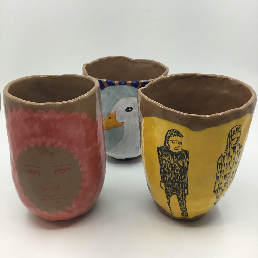 Handbuilt and illustrated ceramic tumbler, each one unique.